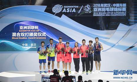 亚锦赛混双颁奖现场(左三王懿律、左五黄亚琼、左六郑思维)