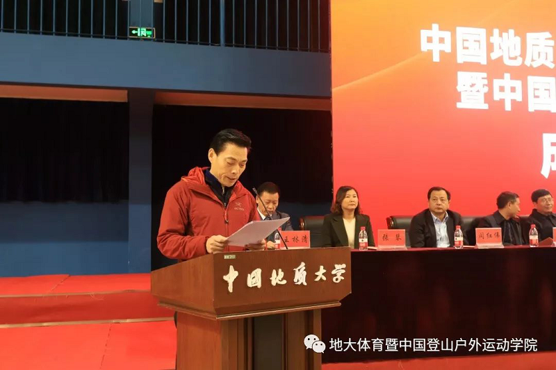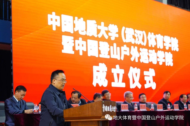 湖北省体育局局长胡功民同志在致辞中表达了对中国地质大学(武汉)成立taptap点点官方网站和中国登山户外运动学院的祝贺,表示学院的成立对湖北省户外运动有着时代性的意义。