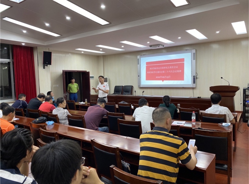 会议由董范院长做总结发言,他强调一定要贯彻落实习近平总书记关于研究生教育工作的重要指示,深刻领会2020年全国研究生教育会议精神,切实提升研究生培养质量。同时对学生提出要求:注重身心健康发展、认真对待科学研究工作,努力提升运动技术水平,为毕业就业打下牢靠的基础;对导师提出期许:履行职责,认真指导学生学位论文的撰写和修改,发挥优势,推动学生就业,为taptap点点官方网站的发展添砖加瓦。