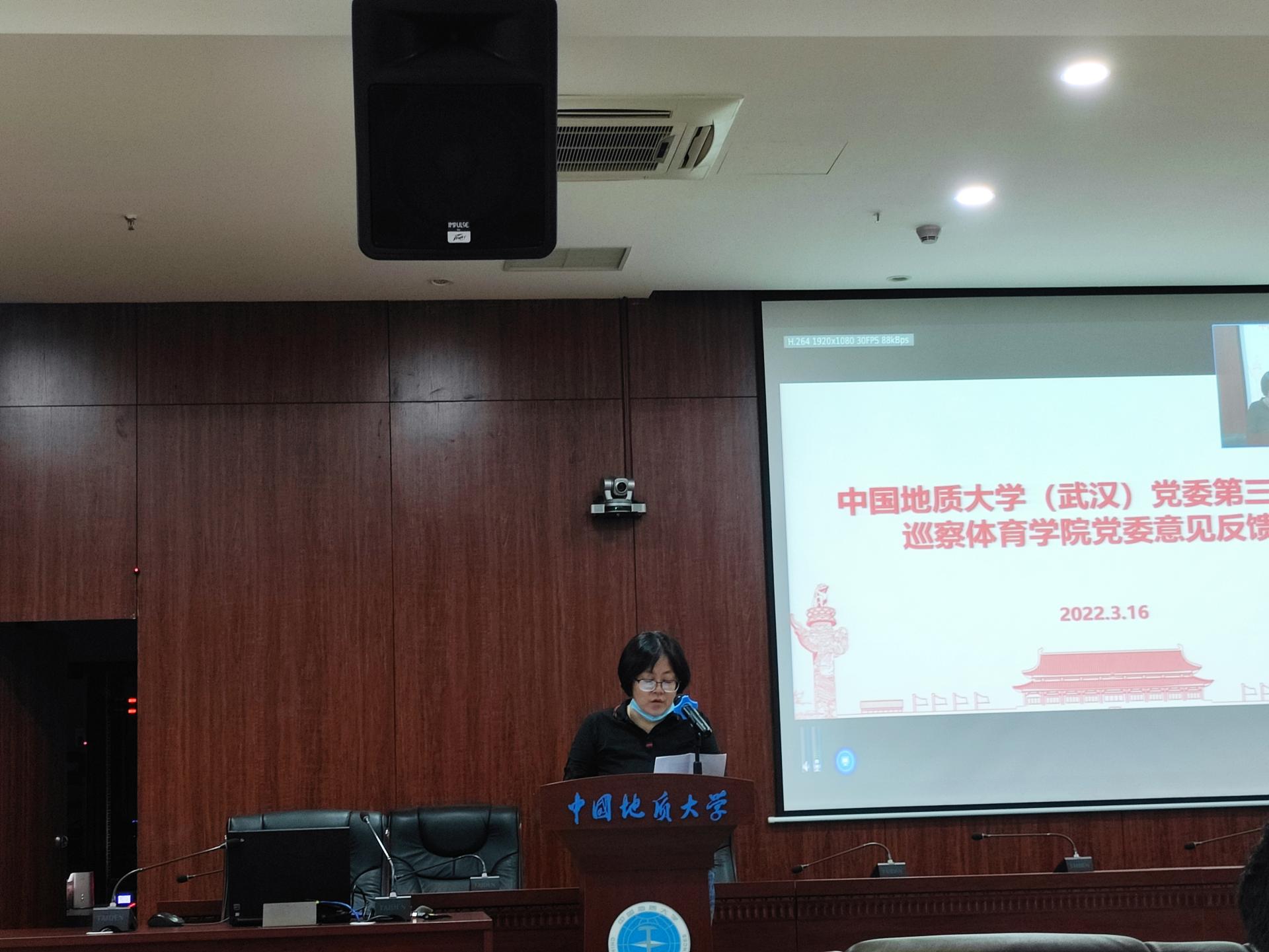 李门楼在反馈时指出,体育学院党委坚持以习近平新时代中国特色社会主义思想为指导,围绕立德树人根本任务,在开展学校公共体育课教学、体育学一级学科硕士点建设及体育专业人才培养中,凝心聚力、积极进取,取得了系列成果;坚持弘扬体育传统与健全人格培养相融合、坚持群众体育与竞技体育相融合、坚持登山运动与地球科学相融合,逐步形成了特色鲜明的体育教育体系和登山户外人才培养体系,高水平运动人才和团队不断涌现,先进人物事迹社会反响强烈,社会声誉持续提升,各项工作稳步推进,发展态势总体良好。对照新形势新任务新要求,巡察发现了一些问题,主要有:一是贯彻落实习近平新时代中国特色社会主义思想,特别是总书记关于教育工作重要讲话精神不到位,理论学习不够系统、深入。二是落实全面从严治党主体责任抓而不严,纪委履行监督职责落而不实。三是贯彻落实新时代组织路线有缺失,基层党组织业务开展不规范。四是落实巡视整改主体责任不到位。