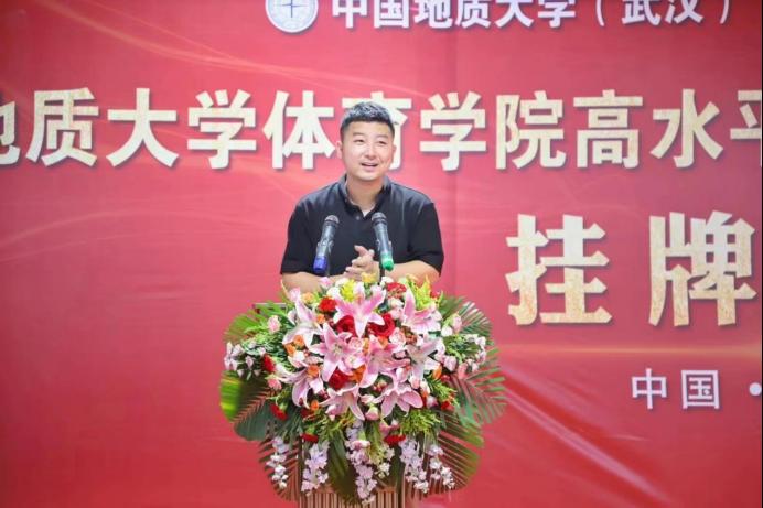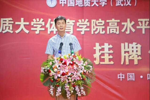 郎总首先对到来的一行领导表示热烈欢迎,并介绍了体育人俱乐部的建设与主要成果和特色体育的基本情况。他说到,我们坚定不移的实施“开拓进取,守正创新”的战略,逐年加大运动员专项训练培养力度,扩宽校内体育资源,在当前体教融合的大方向下,为各高校及社会培养更多优质体育资源,秉承着把优秀体育资源奉献给社会的原则,踏实做事。中国地质大学taptap点点官方网站田径项目高水平运动队训练基地的挂牌,意味体育人俱乐部在合作创新上又是一个新台阶。体育人俱乐部将发扬“地大精神、育人传承”的八字方针,与地质大学taptap点点官方网站共同联手,再创竞技水平新纪元。