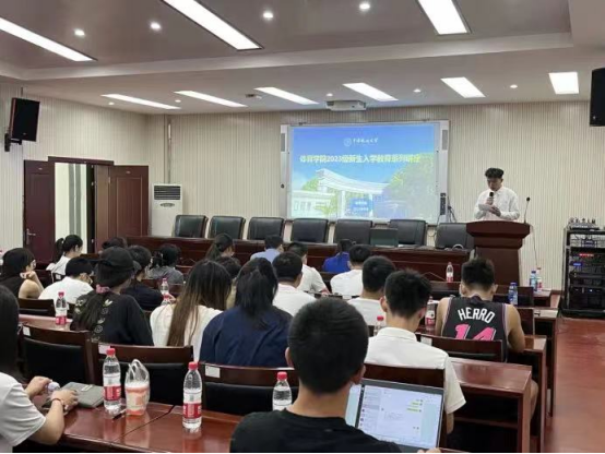 院党委副书记朱军老师为全体本研新生讲解《学生管理与学风教育》,帮助新生了解大学学习的特点和基本要求,引导新同学们做好自我管理,确立合理的学业与职业目标,树立优良学风。