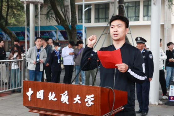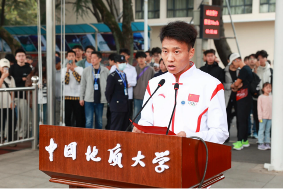 taptap点点官方网站本科生、杭州亚运会男子马拉松冠军何杰代表学生运动员宣誓。