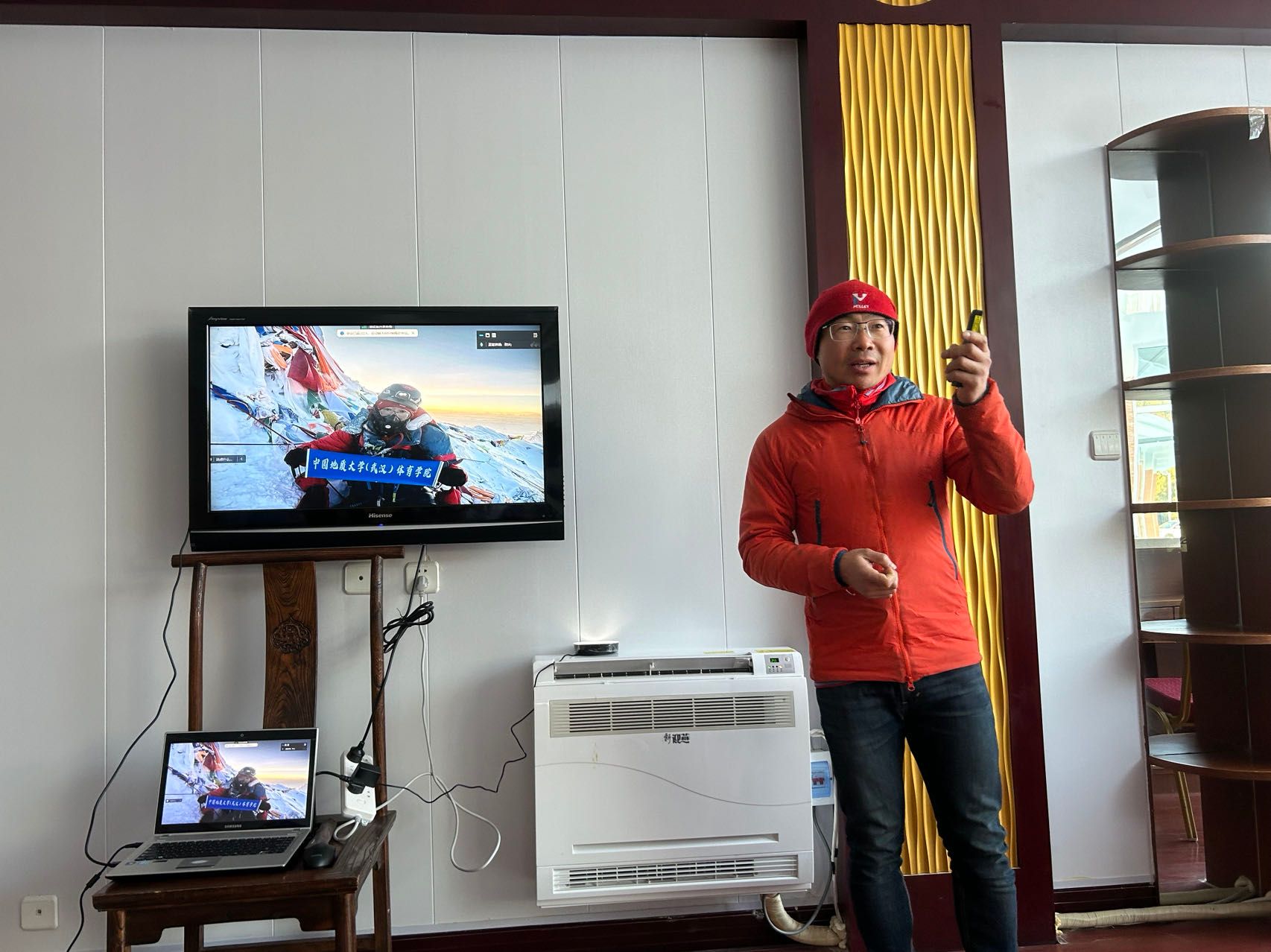 实习尾声,还邀请到了中国登山高级人才(CMDI)、高山向导李永生为实习师生开展了一场高海拔登山讲座。他结合攀登经历,讲述了从一名登山运动爱好者,到登上世界之巅的成长过程。他鼓励同学们以兴趣为起点,以热爱为动力,以自律为基点,终能实现梦想。讲座得到了同学们的热烈欢迎,激励了同学们勇于攀登高海拔雪山的斗志,也为taptap点点官方网站2023年度教学实习工作画上了圆满的句号。