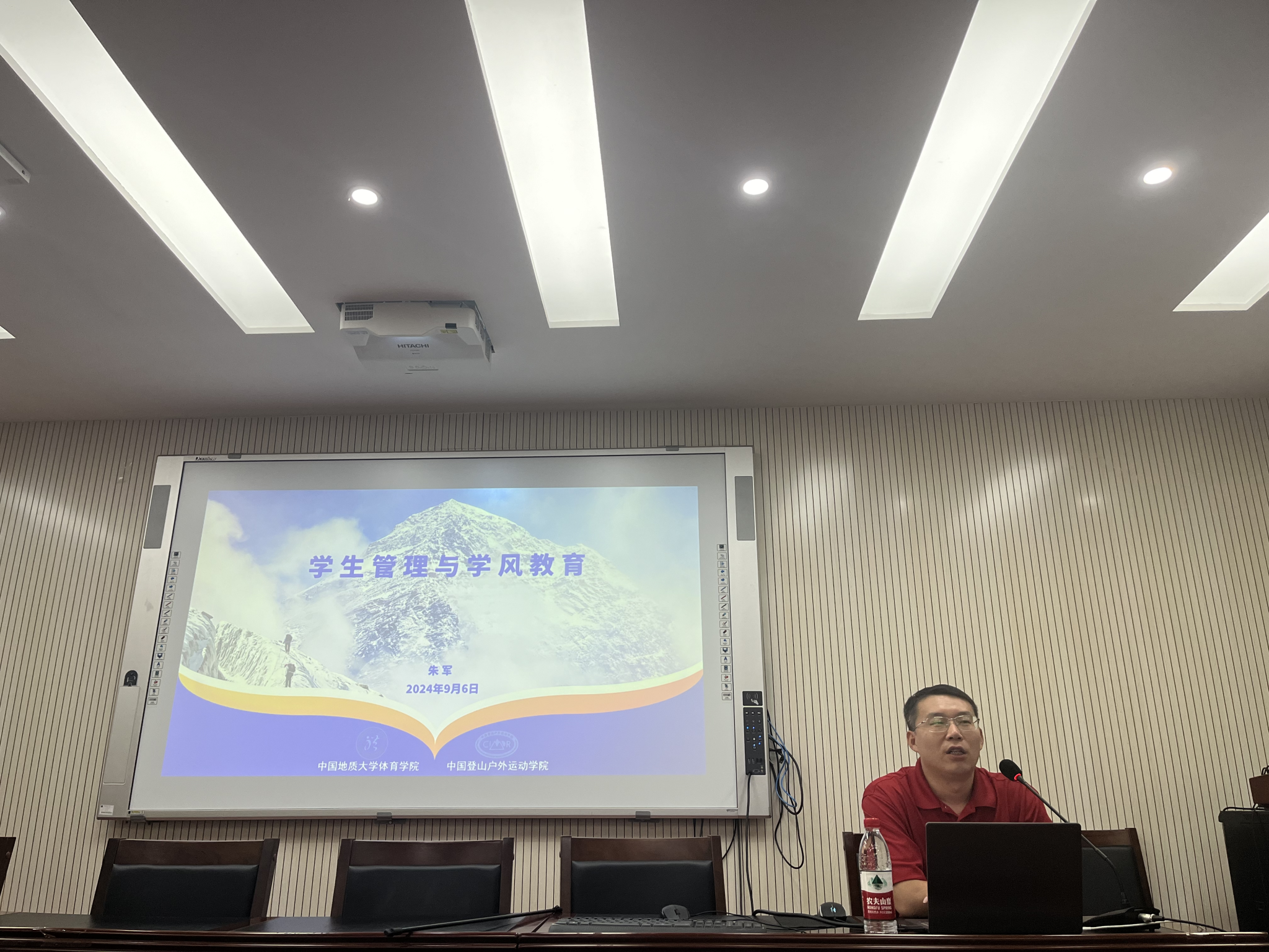 院党委副书记朱军老师为全体本研新生深入讲解《学生管理与学风教育》,引导新生全面认识大学学习的本质要求和特点,强化自我管理能力,明确学业及职业发展目标,培育严谨求实的学风,促进学生全面发展。