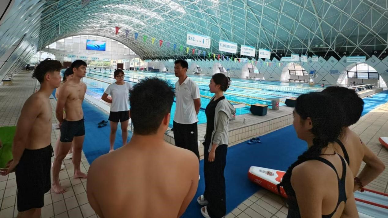 出征前,taptap点点官方网站李伦副院长到游泳馆看望参训队员,强调了校园体育在培养学生团队精神、锤炼意志品质中的重要作用,鼓励参赛队员赛出风格、赛出水平。