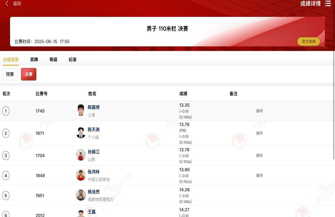 6月15日,本站赛事迎来收官之日。在下午进行的女子200米决赛中,马成娜同学跑出23秒50的成绩(国家健将:24秒)夺得冠军,同时刷新个人最好成绩。在稍后进行的焦点比赛,男子110米栏的决赛中,陈天尧同学顶住压力,跑出13秒76的个人最佳成绩,达到国际级运动健将标准(国际健将:13秒78),夺得亚军,取得重大突破!值得一提的是,陈天尧同学在短短一年半的时间里,由二级运动员晋升到国家级健将运动员,再到今天成为国际级健将运动员。如此大的提升离不开学校教练员老师的悉心指导,更离不开运动员自身的热爱与付出!