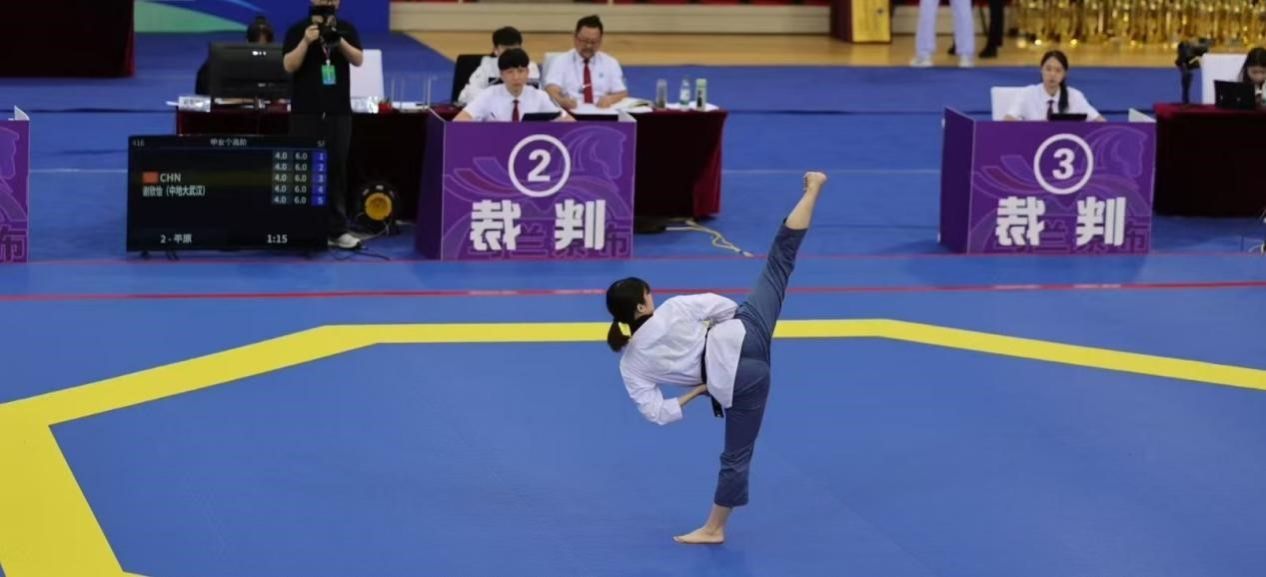 7月6日至11日,第19届中国大学生跆拳道锦标赛(总决赛)在内蒙古乌兰察布市体育馆举行,本次比赛由中国学生体育联合会主办,中国学生体育联合会大学跆拳道分会执行,共有来自全国155所高校的1090名运动员、教练员参赛。taptap点点跆拳道队谢欣怡同学参加了甲组女子个人高阶品势和甲组女子个人段位品势两个项目的比赛。