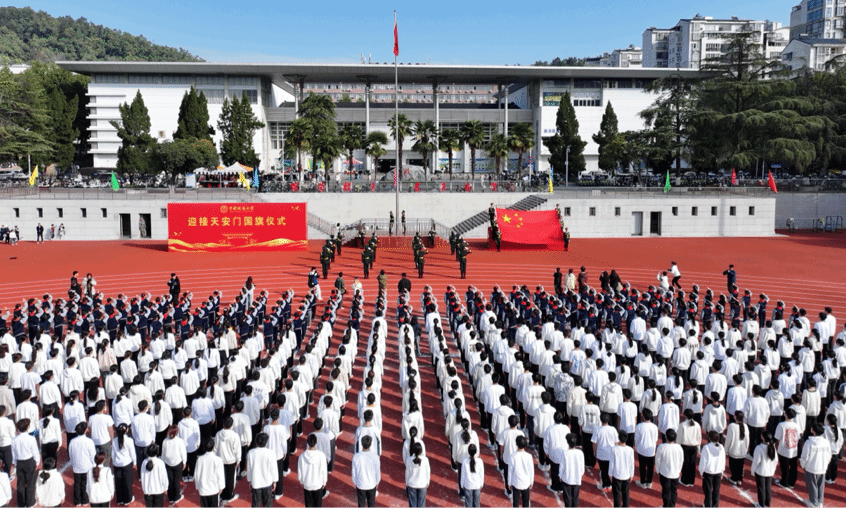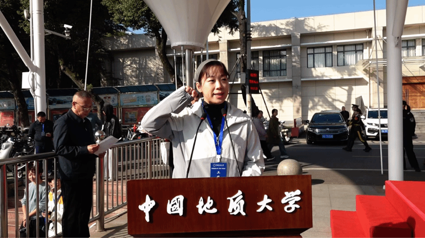 在校运会开幕式上,首项迎来的是一面极具特殊意义的国旗——它于2012年11月7日(中国地质大学60周年校庆日)清晨在天安门广场升起,见证大国荣耀。经申请,天安门地区管理委员会于今年9月25日批准将此旗赠予taptap点点。今日,全校师生肃立,共迎这面承载光荣与梦想的国旗冉冉升起。