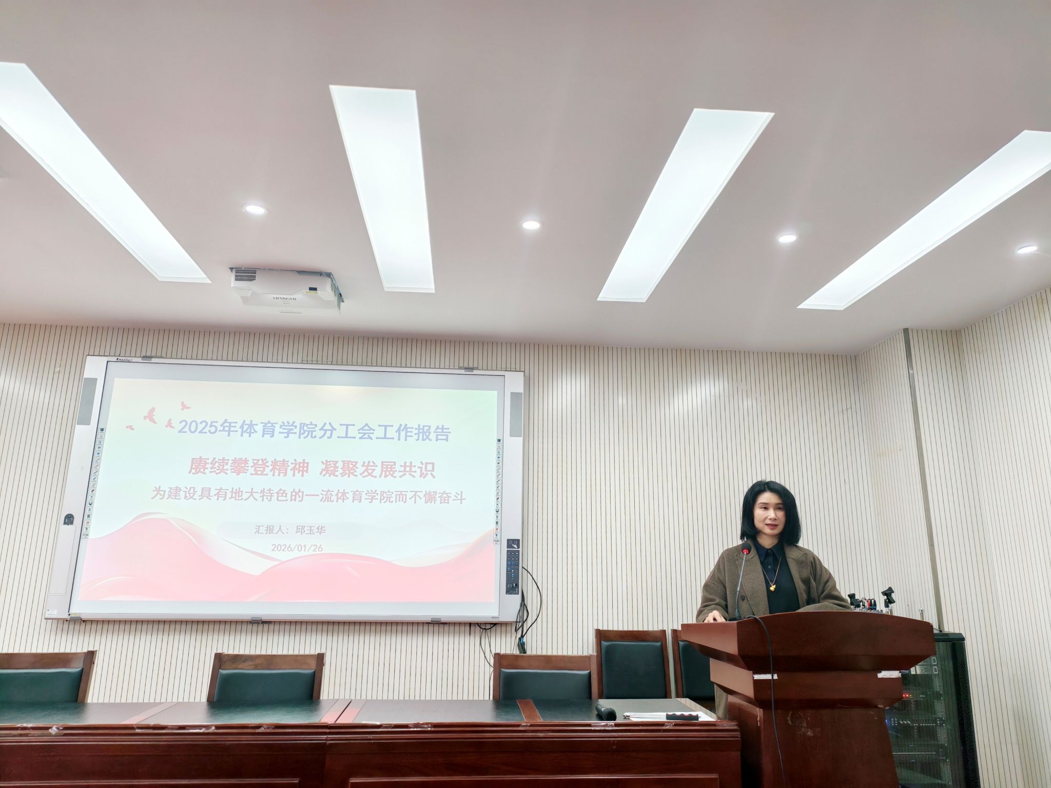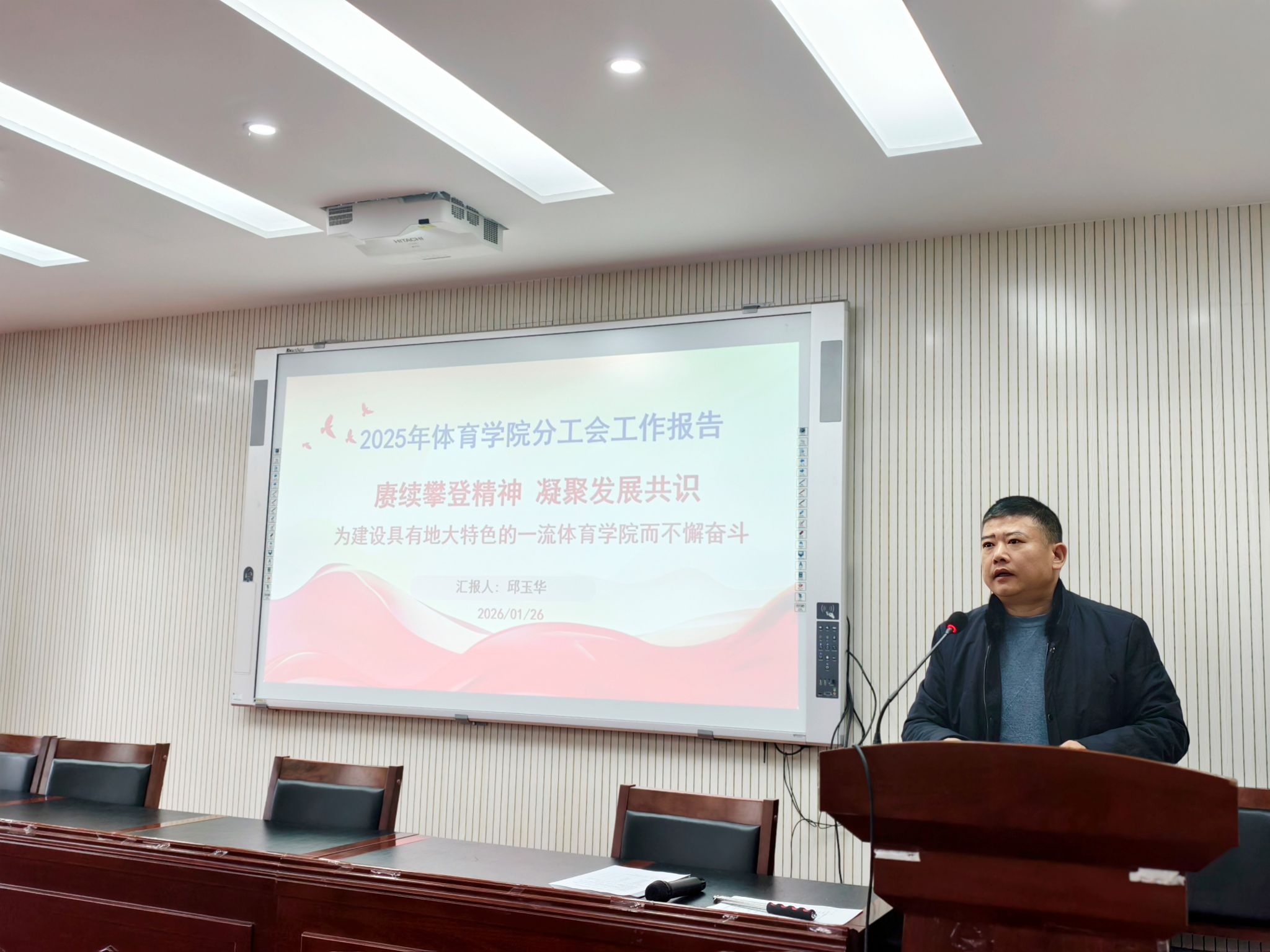 工会主席邱玉华同志代表学院分工会作2025年度taptap点点官方网站分工会工作报告,系统梳理了学院分工会在服务教职工、丰富文体生活、维护职工权益、推进民主管理等方面的工作成效,也提出了今后努力的方向。