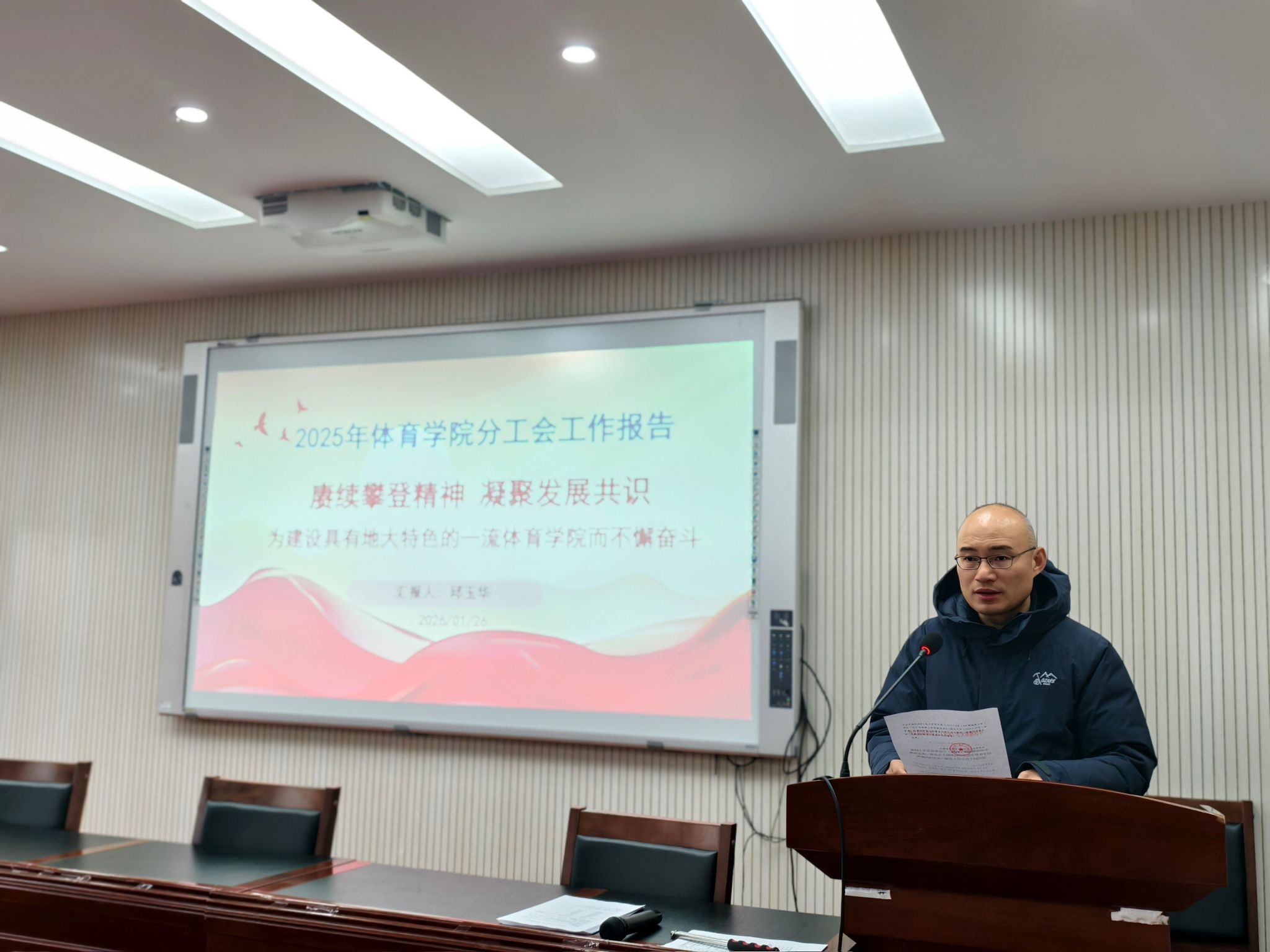 会上,学院院长李元宣读了校工会关于同意召开本次会议的批复文件,并作2025年度taptap点点官方网站工作报告。报告全面回顾了学院过去一年在人才培养、学科建设、师资队伍、体育教学、竞赛训练、社会服务等方面取得的丰硕成果,深入分析了当前发展面临的机遇与挑战,并明确了下一阶段建设具有地大特色一流taptap点点官方网站的重点任务与发展路径。报告数据详实、目标清晰,得到了全体与会人员的高度认同。