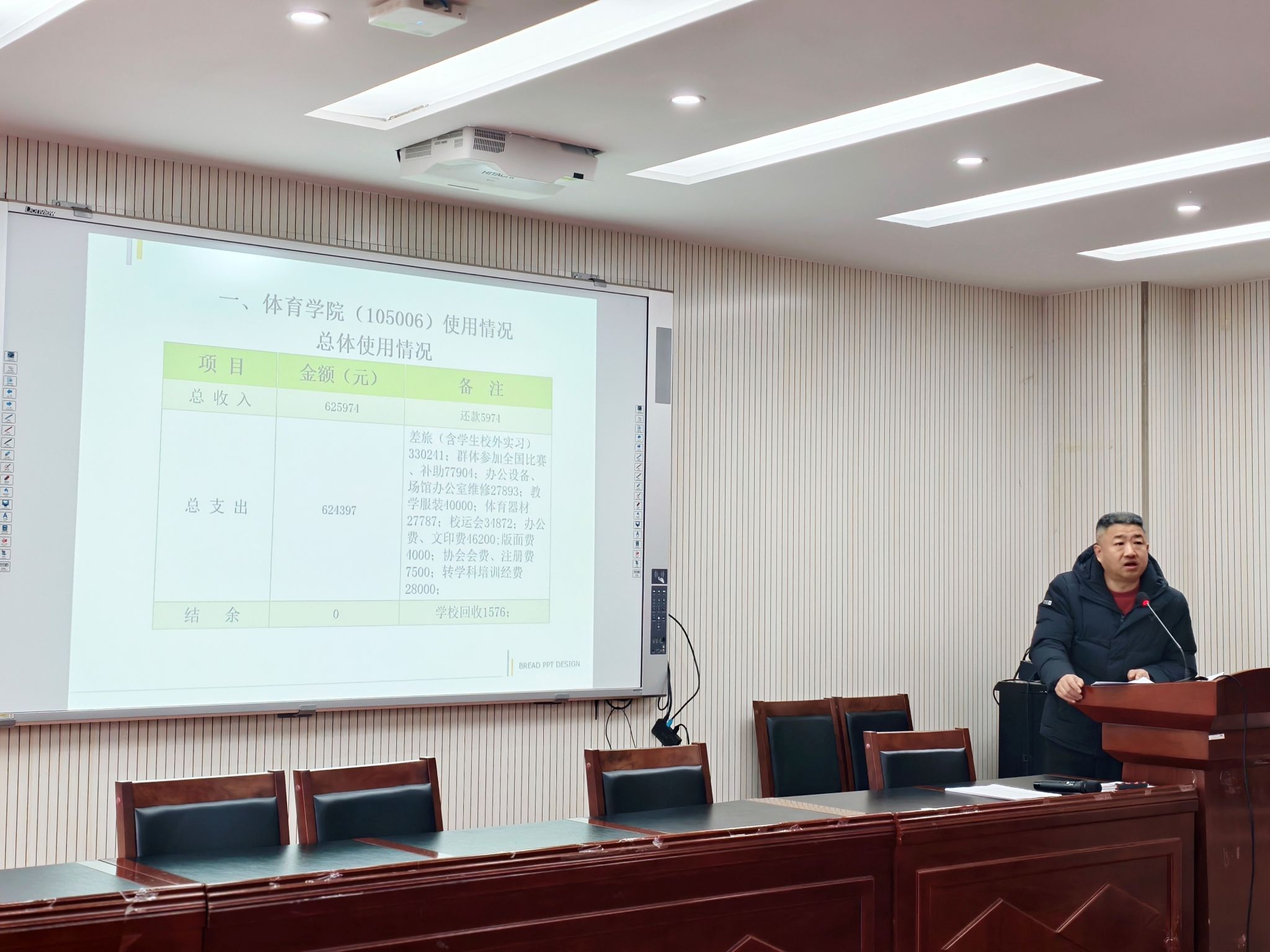 学院办公室主任李铭同志作2025年度财务工作报告,全面呈现了学院经费收支情况与资源配置细节,体现了财务工作的规范性与透明度。