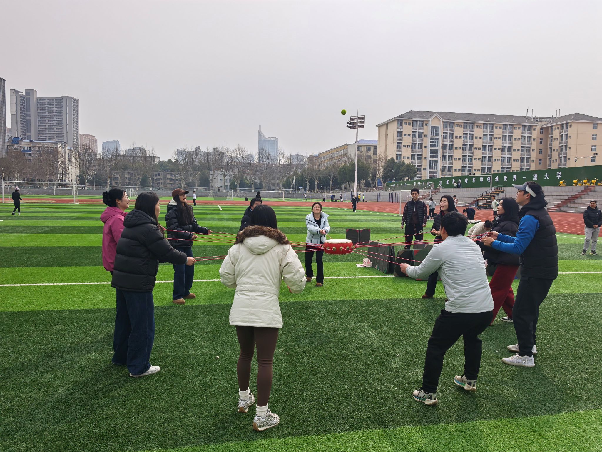 本次活动的核心环节为趣味户外团体游戏,学院分工会精心设计了团结聚力・同心鼓、活力跳跃・绳舞飞扬、趣味投掷・投篓纳福等多项兼具趣味性与协作性的游戏项目,所有参与人员组队竞技,在游戏中展现团队力量。同心鼓游戏里,队员们默契配合、步调一致,让鼓上的网球稳稳跳跃;绳舞飞扬环节,摇绳者节奏均匀,跳绳者身姿轻盈,大家齐心协力刷新跳绳次数;投篓纳福游戏中,投沙包的队员瞄准目标、精准投掷,背篓的队员灵活配合、巧妙接包,各组你追我赶、奋勇争先,赛场之上既充满了紧张的竞技感,又洋溢着互帮互助的温情,充分展现了taptap点点官方网站女性师生健康向上、活力自信、团结协作的良好