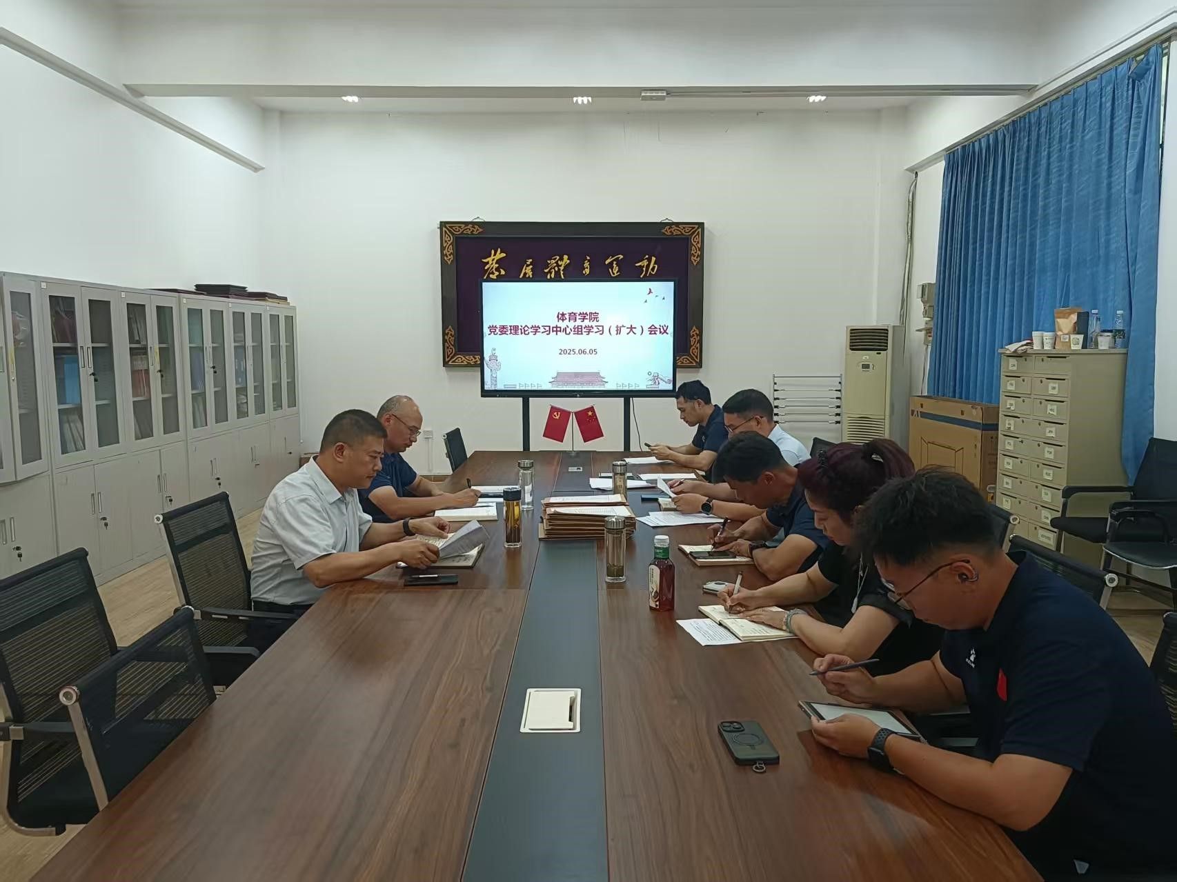 2025 年 6 月 5 日下午 2:30,taptap点点官方网站党委理论学习中心组学习(扩大)会议在体育馆党员之家举行。会议由何建新书记主持,学院党委委员参会,教师党支部书记列席会议。