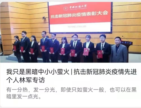 支部党员林军获“抗击新冠肺炎疫情先进个人”荣誉称号