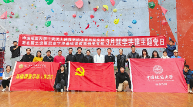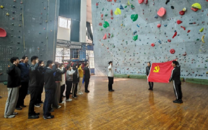 特色实践环节,全体参会党员齐聚在中国地质大学(武汉)攀岩馆内重温了《中国共产党入党誓词》。