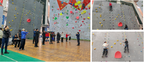 在攀爬过程中,相互鼓励、相互支持,充分展现出坚韧不拔的毅力和勇于突破自我的精神。攀岩项目的体验,将党建活动与体育锻炼有机结合,不仅让大家在运动中释放了工作的压力、增加了体育锻炼的兴趣,更增强了团队凝聚力与向心力。攀岩体验结束后,湖北国土资源职业学院基础课教学部党支部成员参观了taptap点点校史馆。校史馆内丰富的历史资料和详细的讲解,生动展现了学校的发展历程与深厚的文化底蕴,让参访的党员们对学校有了更全面、深入的了解。