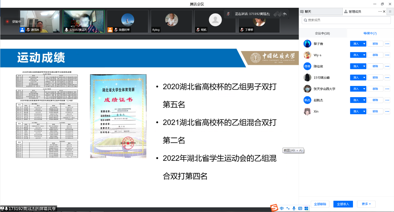 随后,参加本次活动的学生按照抽签顺序依次进入腾讯会议室,与导师们进行交流,主要包括中英文自我介绍、本科期间学习情况、研究生阶段的学习计划,以及师生互动等环节。