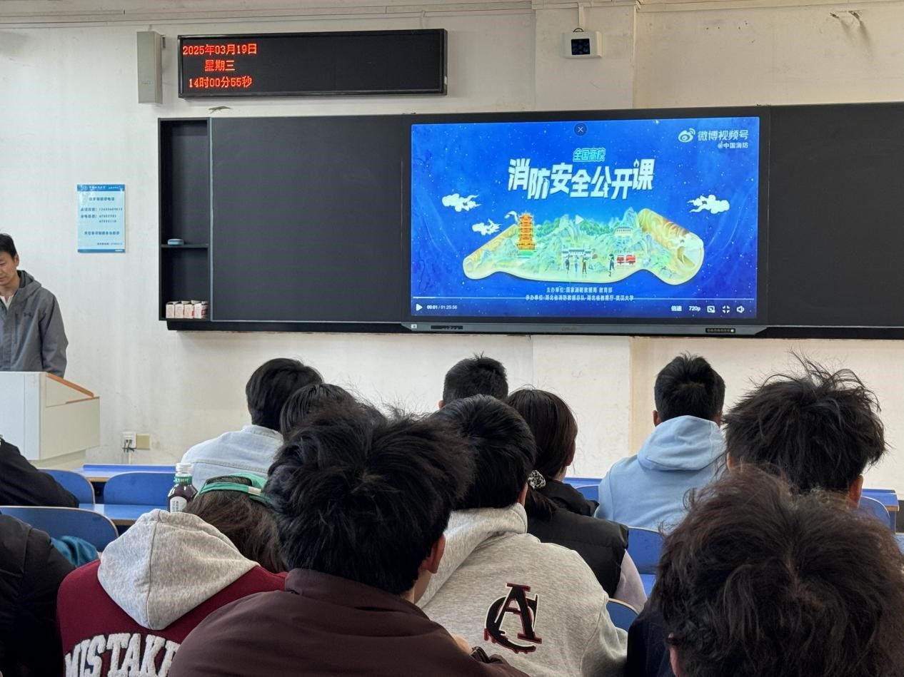 3月18日下午,学院组织本科生在北综401教室集中观看消防安全公开课直播。课程通过真实案例解析、消防法规解读、火场逃生模拟演示等内容,系统讲解了校园火灾预防、初期火情处置及应急疏散要点。
