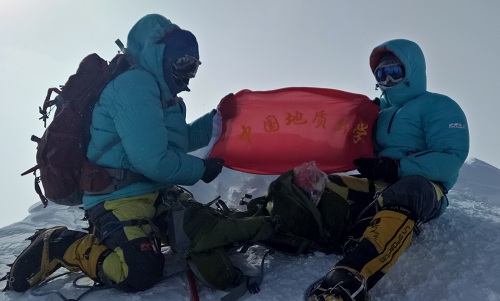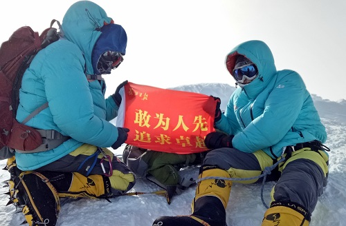 12月13日,早起,有风,但雾渐散,早饭过后,天渐晴,紧急决定,收拾装备,准备冲顶,当地时间09:05开始冲顶,雾时不时挡住太阳,尽管穿着羽绒衣裤也感受不到温暖,行进大概1个半小时后,雾越来越大,开始起风,此时牛老师的衣服全部汗湿有些冷,以防失温,牛老师决定下撤,考虑到天气正在变坏,该山峰冰裂缝众多,董老师结组陪同牛老师下撤,安排剩余三名队员,抢在大风来之前继续冲顶,三名队员马不停蹄,不敢耽误片刻,还是在行进4小时后遇上了大风,当到顶峰的山脊时,我们从未遇到过如此大的风,尽管是结组行进,队员们也被风吹的像是在跳舞,后来通过天气预报才知道,顶峰的风速高达20米每秒,在强风下我们不敢耽搁,艰难的拉起国旗、校旗、队旗拍完照片后,迅速下撤,路上风力越来越强,刚找了个风小的地方,想坐下来,背包就被吹到50米开外去了,雾也越来越大,为了防止迷路,我们只能不休息的直奔营地,终于在当地时间17:35顺利返回C2营地,队员们的手指,脸都出现了轻微的冻伤,不过还是赶在不可预测的坏天气前成功登顶文森峰(耗时6小时25分)。与我们一同从文森峰大本营出发的队伍,由于没有抓住天气窗口,至今仍滞留在C1营地,根据天气预报,未来三天仍是大雾并伴随72-81公里每小时的西南风,希望他们好运。按计划明天下撤至文森峰大本营,等待飞机送往联合冰川营地,准备南极点的徒步。